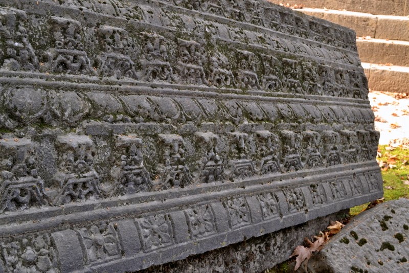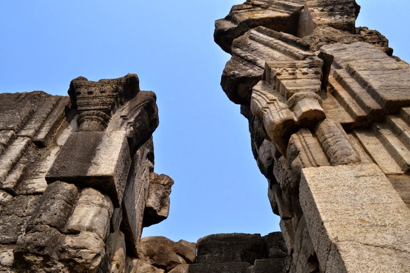 The cornice of the base of the peristyle is similar to that of the Avantisvami temple. The cells were preceded by a row of fluted columns, bases of some of which are in situ while those of others are scattered about in the courtyard.