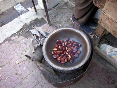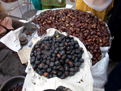 Panjayeeb G’aaer or Punjabi Singhara (Water Chest Nuts) being sold in Srinagar. Srinagar, Nov 2010.