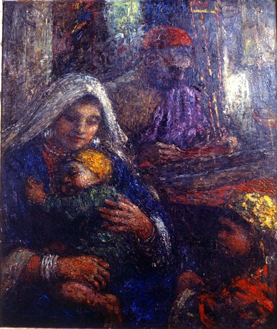 Mother and Child, 1916. Perhaps the best of his work. Or perhaps one of the finest paintings on Kashmir. Or just an image of Madonna. Or an image of Kashmir. Proverbial Maej Kasheer.