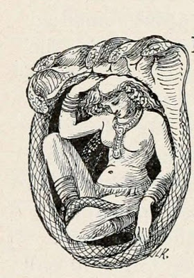 The snake woman or Lamia by J. Lockwood Kipling, father of Rudyard Kipling. It accompanies the story of ‘The snake-woman and the king Ali Mardan’ in ‘Tales of the Punjab : told by the people’ (1917) by Flora Annie Webster Steel (1847-1929). |