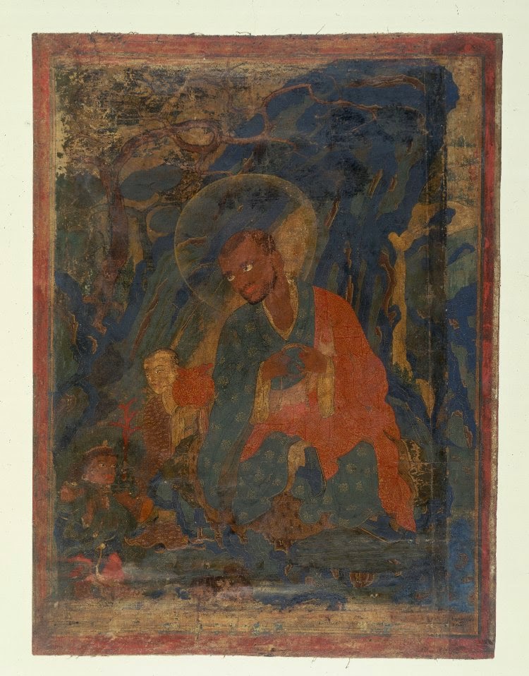 Kashmiri Pandit Monk Shakyashribhadra (1145-1244), about 1300, Shakya Monastery, Tibet. He went there in about 1204 after destruction of Nalanda, and returned after a decade to live another three decades in Kashmir. This is one of the rare portraits in which ‘Kashmiriness’ of his features is prominent. Came across it in the book “The Arts of Kashmir” Ed. by Pratapaditya Pal.
