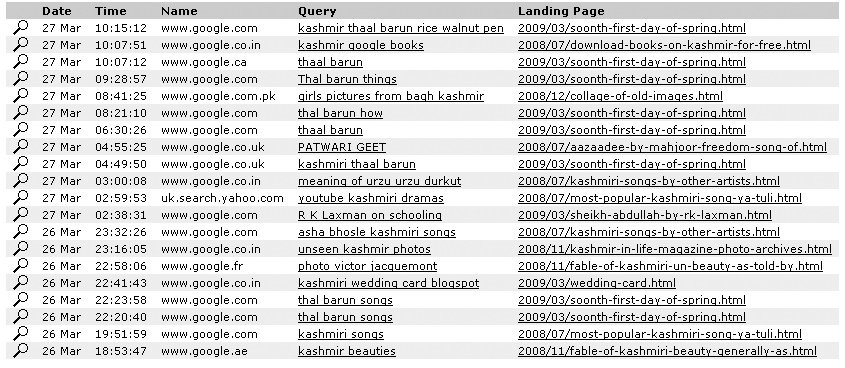 Thanks to Kashmri pandits around the world (mostly USA) and thanks to the post about Soonth, search query stats of this blog yesterday (and today morning )looked like this: