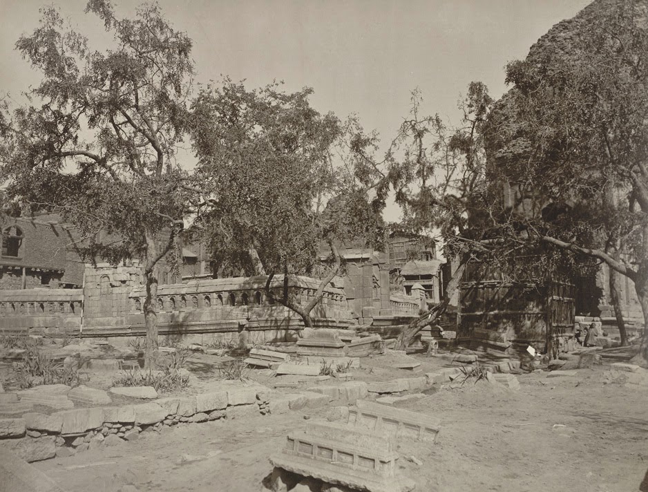 Photograph of the enclosure surrounding Zain-ul-abidin’s tomb taken by John Burke in 1868 for his ‘Illustrations of Ancient Buildings in Kashmir’ (1869). Via British Library.