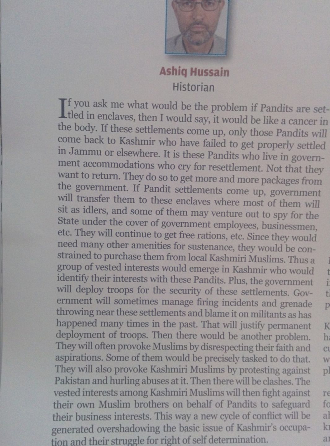 According to him, it’s not a matter of where Kashmiri Pandits settle…infact Pandits need to learn to shut up. If you are not ready to be held hostage, stay out. At least learn something from the Sikhs of Kashmir. For your heart shall be judged.