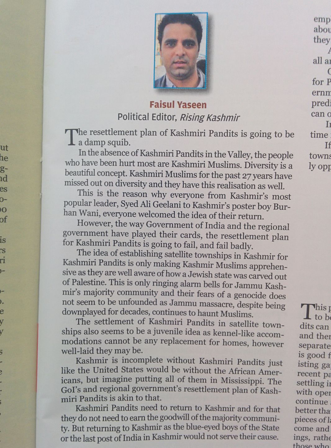 Kashmir based magazine “Kashmir Narrator” has been trying to carry forward a discussion on the question of Kashmiri Pandit rehabilitation. The discussion is build around opinions sought and given by Kashmiris of the two communities and belonging to various cross section of society and ideological divide. The November 2016 issue had opinion from a lot of Pandits. I was among the people who voiced their opinion.