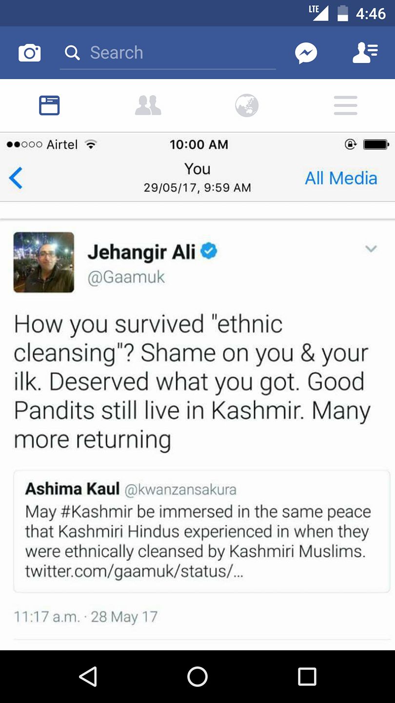 It’s like progeny of Rabindranath Tagore runs a whatsapp group in which he shares fake news from 1947 and then blames muslims for all the troubles in India. See what is wrong with Kashmir.