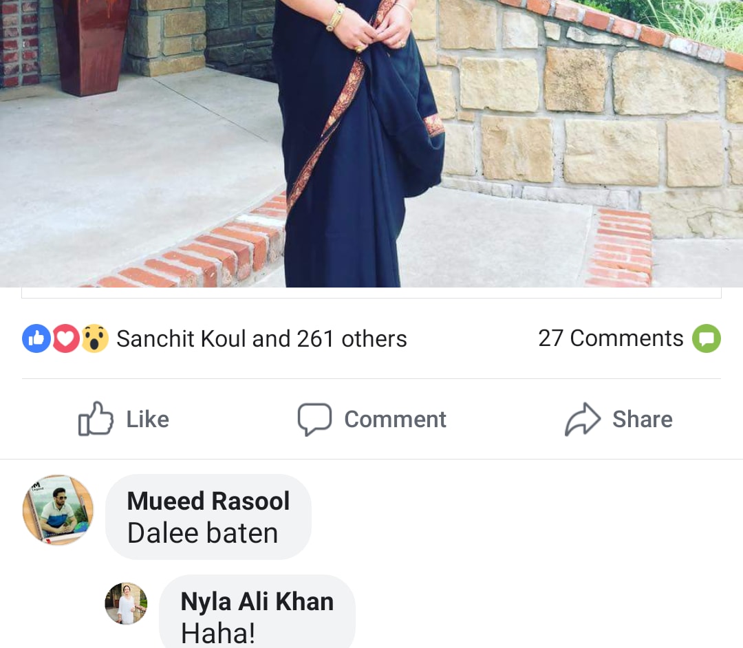 If you are a KM woman and wear saree, someone may call you “daal battin”…which is a slur for KP woman. This expected in kashmir.. But, what is your response if you are also a Kashmiri academician on Kashmir conflict. You say, “Haha!”
