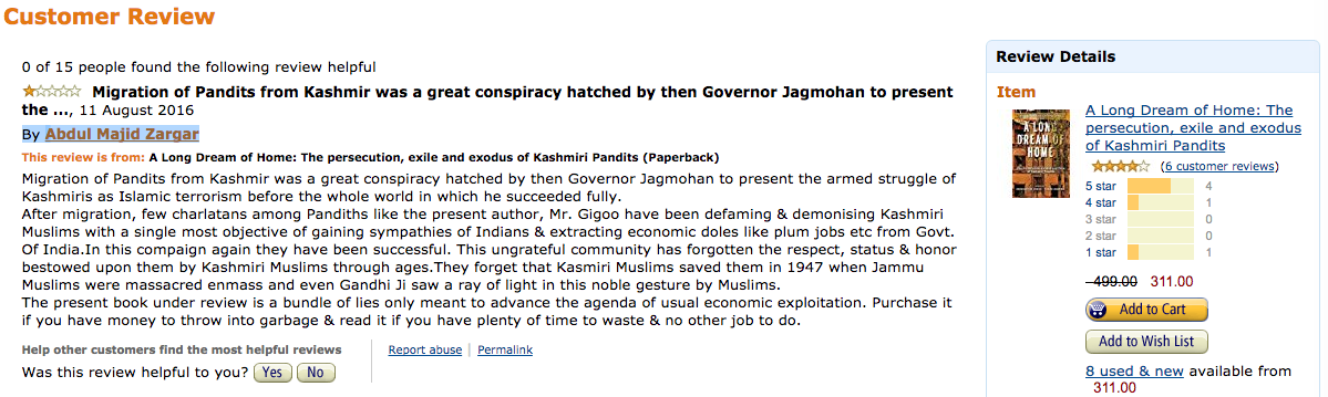 So, here’s how you review. You don’t read the book (cause you are saving money), you just vomit all over it. All the accusations are usual that most Pandits are now used to. What stands out it the man who is making the claim, taking his timeout to spit bile on an Amazon review page.