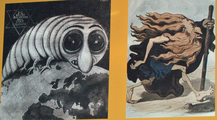 | Antisemitic propaganda in Nazi Germany: on the left, a depiction of Capitalist/Communist Vermin in Der Stürmer, September 1944; on the right, a painting by Gustave Doré at an exhibition dedicated to the Wandering Jew in 1937–8 |