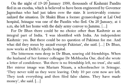 1. Legitimises the narrative that exodus was engineered by Jagmohan. No KP refugee is quoted on it. KM narrative is peddled.