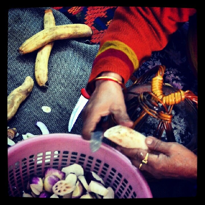 with paste of lotus stem and root,