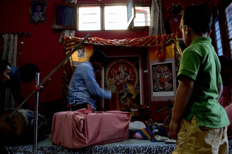 Somehow it didn’t come as a surprise. It made sense, in a way. Yet it felt strange. This eager assimilation. Jagrata a day before Mendiraat ceremony! Jagarata may well be a common social event for most North Indian Hindus but I guess for Kashmiri Pandits it is a new way of expressing old religiosity. Cousins weren’t very excited about it, even a bit disappointed.’We have seen enough Jagarata in Delhi. We came for a Kashmiri Mehendi Raat.’