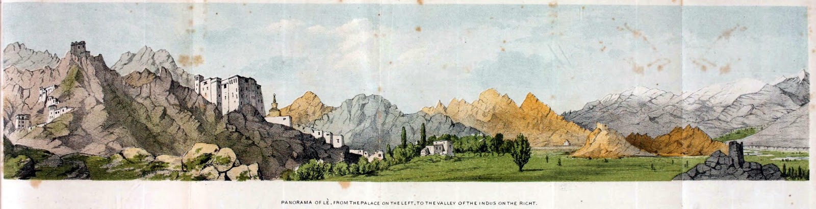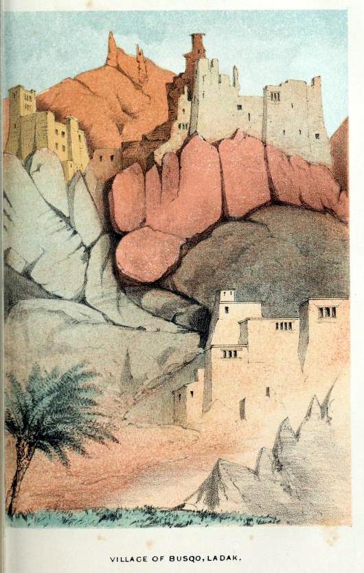 A paintings of Leh from ‘Travels in Ladâk, Tartary, and Kashmir’ (1862) by Henry D’Oyley