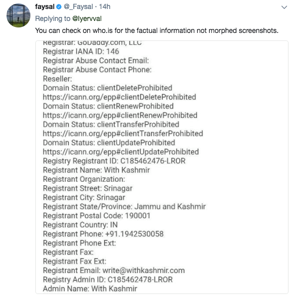 The person who runs “withkashmir. org” [again having a twitter verified account ] claimed that “.org’ and “.com” are different.