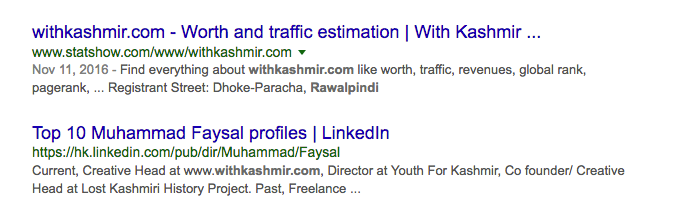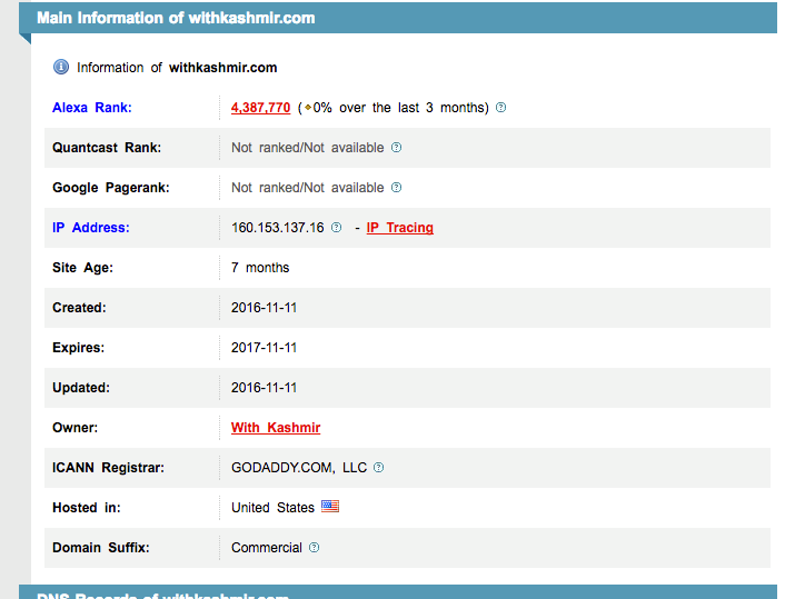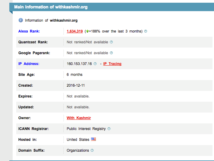 Yesterday, someone on twitter claimed that withkashmir. com is a site that was IP owned by someone sitting in Rawalpindi. The owner of withkashmir. org claimed that his site is “.org” and not “.com” and .org is hosted in Kashmir. So it was a smear campaign against the site.