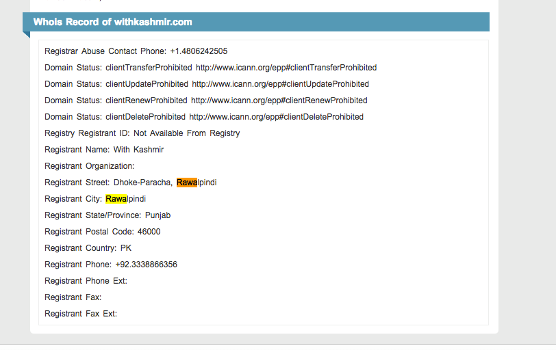 If one now looks up the whois info…even “.com” is now showing that it was registered in Kashmir.