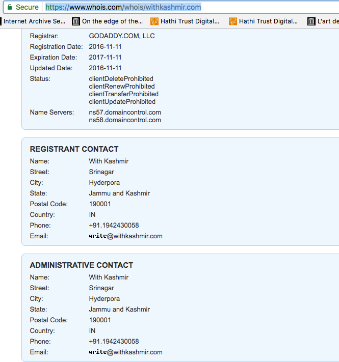 | after the expose…the “updated” address of .com site also showing Kashmir address |